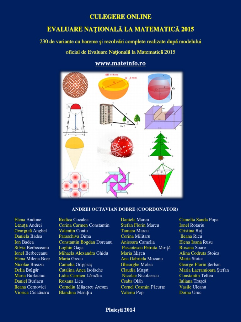 Costel chiteș, profesor de matematică la colegiul național „tudor vianu din capitală, spune că cel mai important pentru ziua examenului este ca elevii să citească cu atenție cerințele, inclusiv datele problemelor. Subiecte si barem evaluare nationala matematica si limba romana, iunie 2020] edu.ro meditatii matematica, romana. Alege ofertele cu garantia de livrare si iti dam banii inapoi daca produsul nu corespunde descrierii iar la fiecare comanda finalizata. Agenţia naţională pentru curriculum şi evaluare. Este interzisă introducerea în sălile de examen a oricărui tip de materiale ajutătoare: